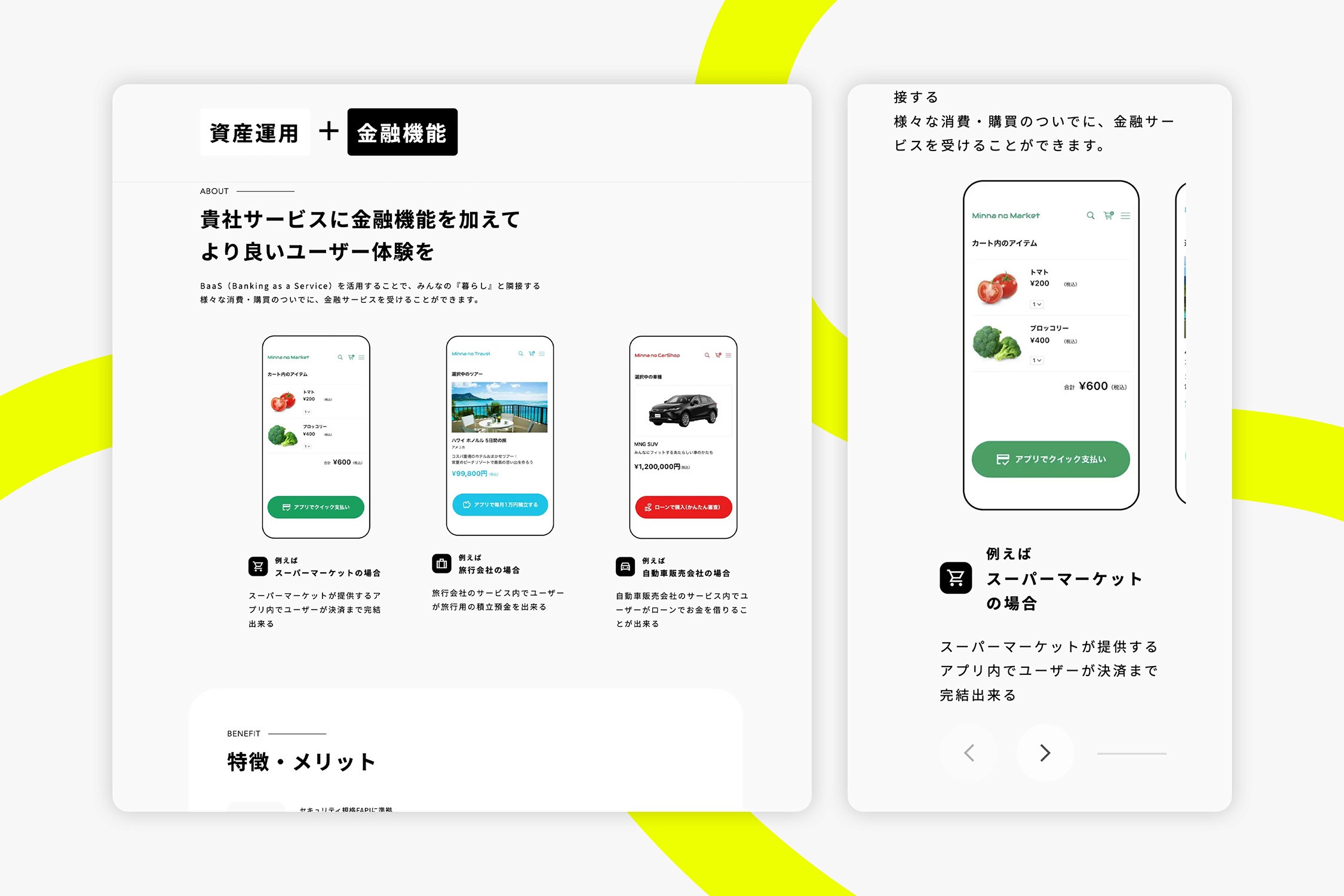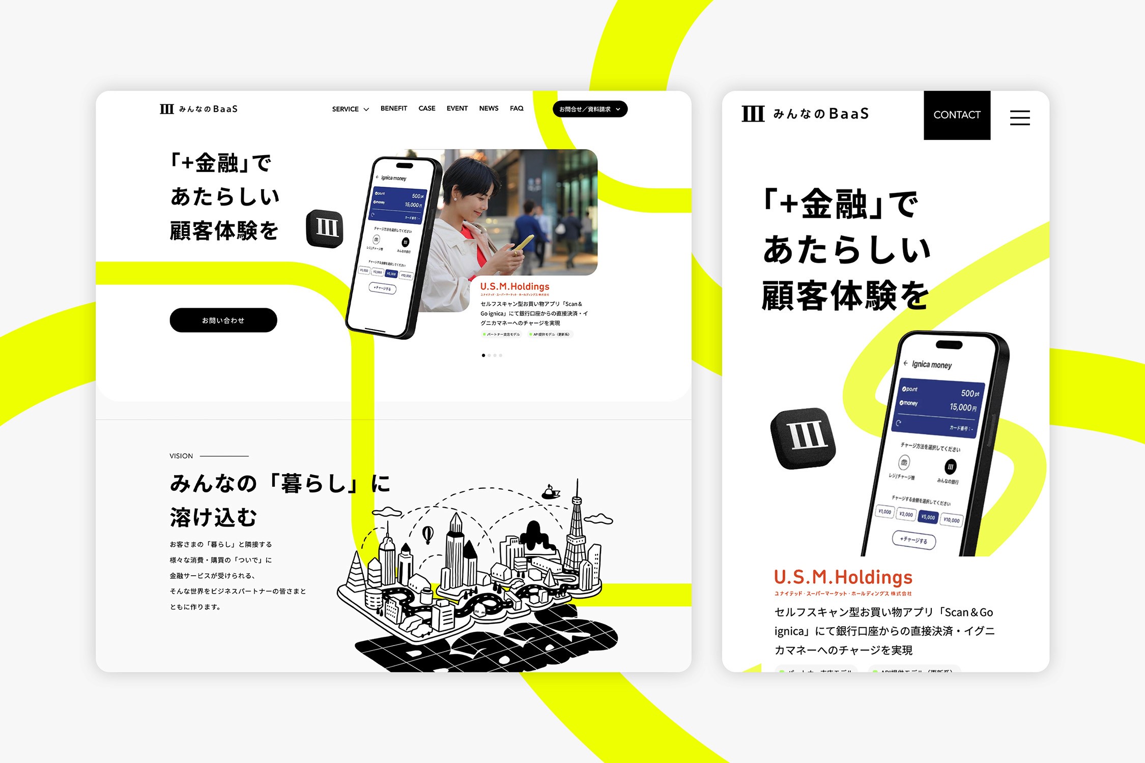 Established a cohesive responsive framework that maintains visual consistency and brand identity across all device sizes—from desktop to mobile viewports. The homepage leverages bold imagery and clear hierarchical structure to immediately communicate service value, whilst content pages employ the signature yellow line motif as a conceptual thread throughout the user journey. This distinctive visual element embodies the core proposition of connecting banks with their customers' end-users, transforming an abstract B2B service concept into a tangible, memorable brand expression. The modular component system ensures scalability as the service offering expands, whilst the strategic use of white space and typography hierarchy enhances comprehension for corporate decision-makers navigating complex financial technology solutions.
