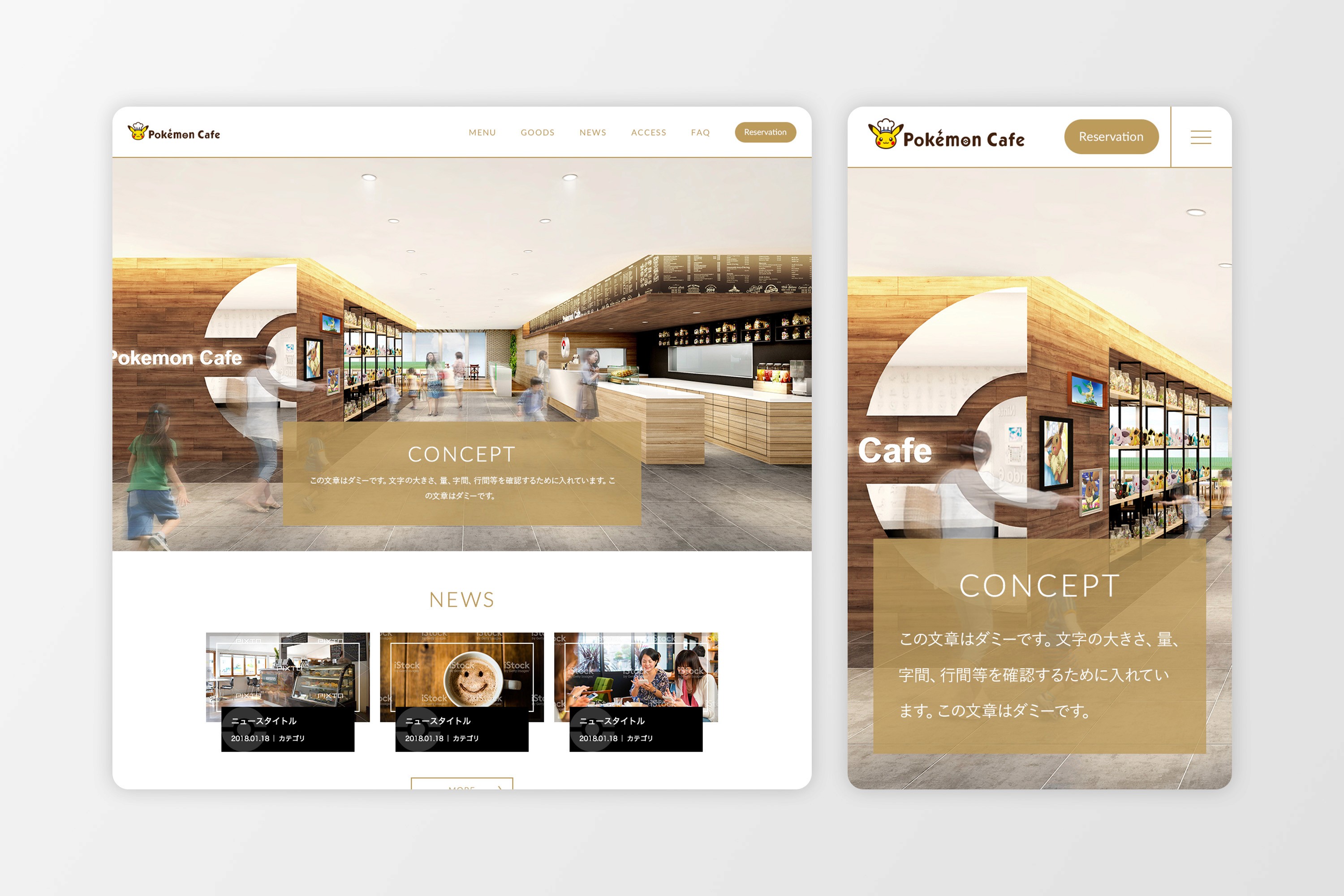 Designed the official website for Pokémon Café, establishing digital brand identity for a new dining experience before physical opening.